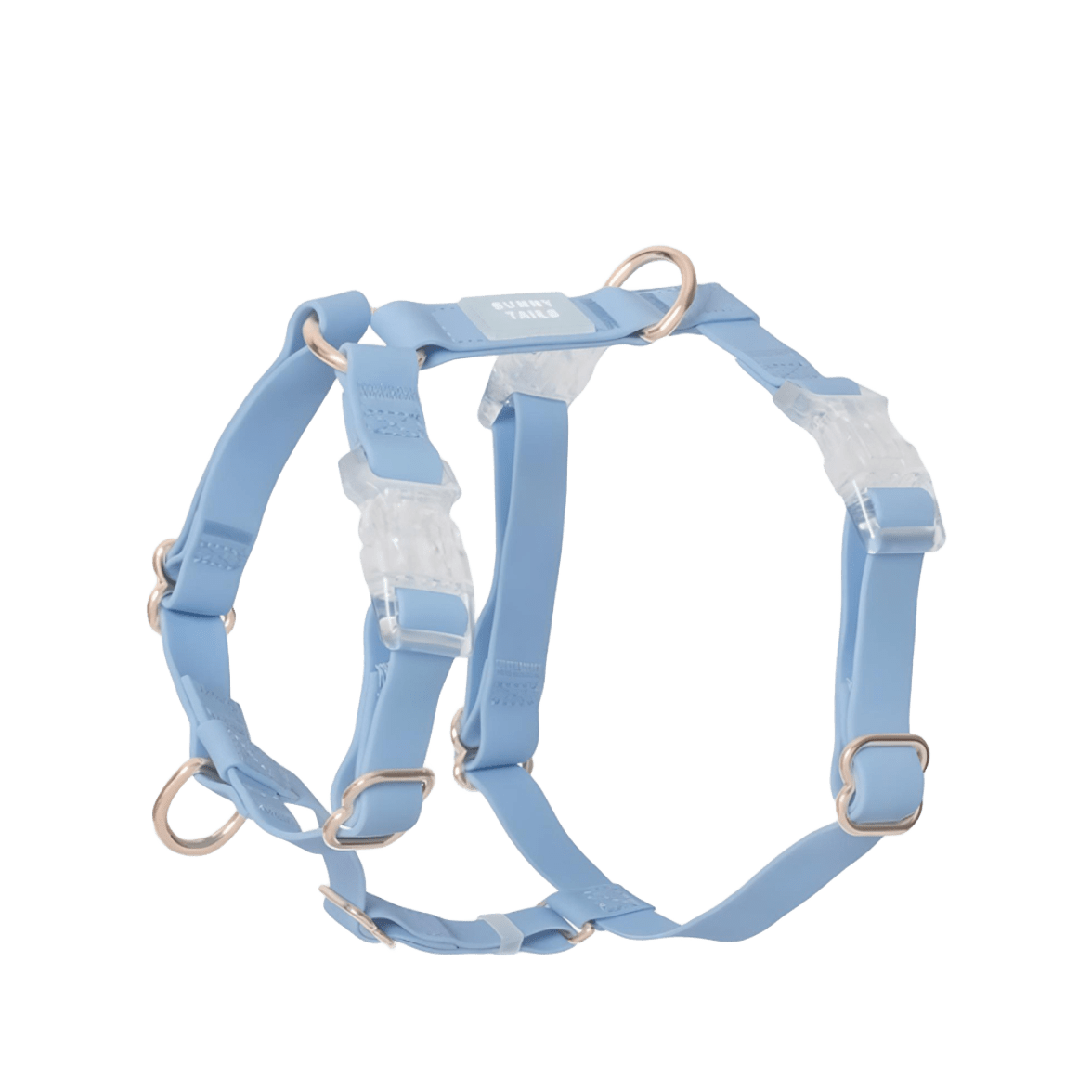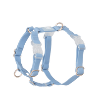 Dispose d'une attache au cou et de deux pinces à la poitrine pour faciliter l'enfilage et le retrait du harnais.