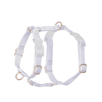 Dispose d'une attache au cou et de deux pinces à la poitrine pour faciliter l'enfilage et le retrait du harnais.