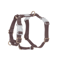 Dispose d'une attache au cou et de deux pinces à la poitrine pour faciliter l'enfilage et le retrait du harnais.