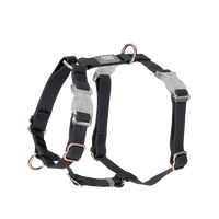 Dispose d'une attache au cou et de deux pinces à la poitrine pour faciliter l'enfilage et le retrait du harnais.