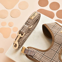 Emmenez votre chiot pour une promenade raffinée avec notre laisse élégante motif écossais. Sa riche teinte brun chocolat et son design champêtre garantissent que votre chien sera remarqué, que ce soit en ville ou à la campagne. Cette laisse est non seulement esthétique mais aussi pratique, grâce à ses caractéristiques bien pensées :